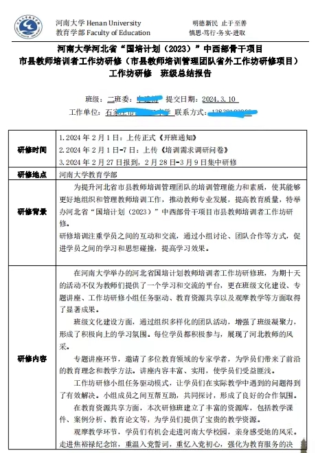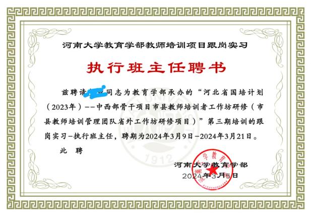 河南大學(xué)教育學(xué)部于2024年2月27日至3月21日,順利完成了河北省“國培計(jì)劃(2023)”——中西部骨干項(xiàng)目市縣教師培訓(xùn)者工作坊研修(市縣教師培訓(xùn)管理團(tuán)隊(duì)省外工作坊研修項(xiàng)目)三期的300名參訓(xùn)教師的集中培訓(xùn)任務(wù)。