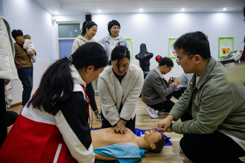 在龍?jiān)葱W(xué),90名教師參加了培訓(xùn)活動(dòng)。培訓(xùn)采取“集中授課”和“小班教學(xué)”兩種模式。志愿者王靜利用模擬人邊講解邊進(jìn)行操作,演示了在心臟驟停等緊急情況下,如何把握好“黃金4分鐘”,快速、正確地運(yùn)用心肺復(fù)蘇術(shù)實(shí)施緊急救助。隨后,所有參訓(xùn)老師被分成6組,每組由兩名志愿者進(jìn)行示范和逐一指導(dǎo),確保在在場(chǎng)的老師人人都能親自體驗(yàn),個(gè)個(gè)都能操作過(guò)關(guān)。“理論講解,實(shí)踐操作,現(xiàn)場(chǎng)考核,此次培訓(xùn)設(shè)計(jì)合理,讓我收獲很多,今后,我將在傳播普及應(yīng)急救護(hù)方面積極努力,讓更多的人在災(zāi)害和傷害發(fā)生時(shí),能成為生命和健康的守護(hù)者。”培訓(xùn)結(jié)束后,龍?jiān)葱W(xué)教師婁娜娜說(shuō)。