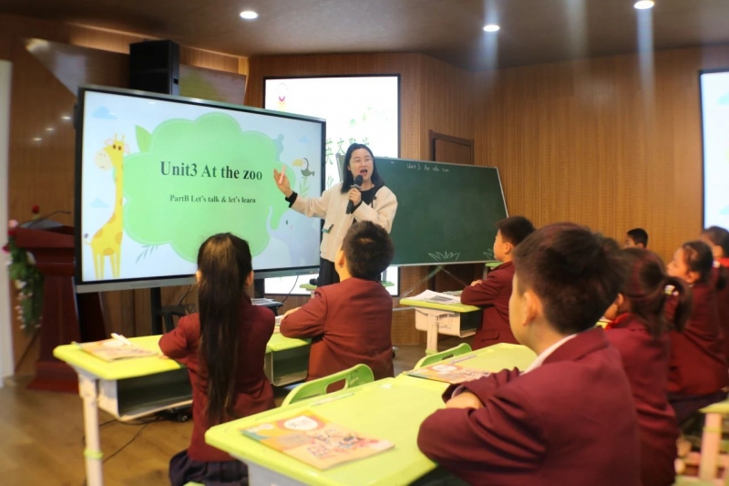 鄭州市鄭東新區(qū)外國語小學(xué)教師李小楠帶來了一場精彩的課堂展示——小學(xué)英語人教版三年級下冊Unit3 At the zoo Part B 對話課。李小楠?jiǎng)?chuàng)設(shè)的動(dòng)物園之旅情境,有效提高了學(xué)生的英語學(xué)習(xí)興趣。她板書清晰明了,課件精美,并巧用自然拼讀,激發(fā)了學(xué)生的創(chuàng)新思維,教學(xué)目標(biāo)的達(dá)成水到渠成。鄭星星對兩位教師的課堂給予高度肯定,同時(shí)提出寶貴建議,為英語教師接下來的教學(xué)明確了思路和方向。
