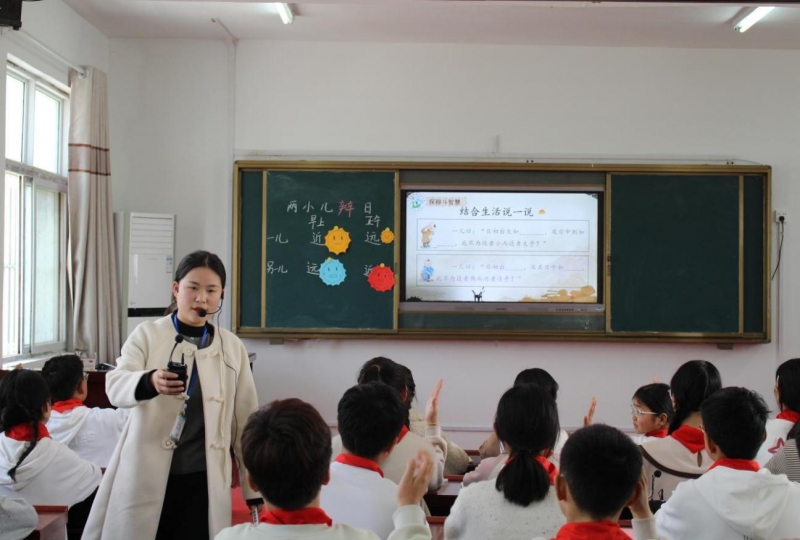 任店鎮(zhèn)中心小學(xué)胡夢真老師執(zhí)教《兩小兒辯日》。胡老師以“辯”字為切入點(diǎn),讓學(xué)生感受辯論賽的精彩魅力,引導(dǎo)學(xué)生在誦讀文章的時(shí)候加以自己的感悟,進(jìn)而加深對課文內(nèi)容的理解,引導(dǎo)學(xué)生反復(fù)誦讀文言文,在讀中感受語言文字的魅力,以讀促悟,拓展延伸環(huán)節(jié)中,胡老師以連線科學(xué)老師的形式,幫助學(xué)生明確科學(xué)道理,激發(fā)了學(xué)生們探索科學(xué)的精神。整節(jié)課構(gòu)思新穎,凸顯學(xué)生的主體性,受到了在場觀課老師的高度好評(píng)。
