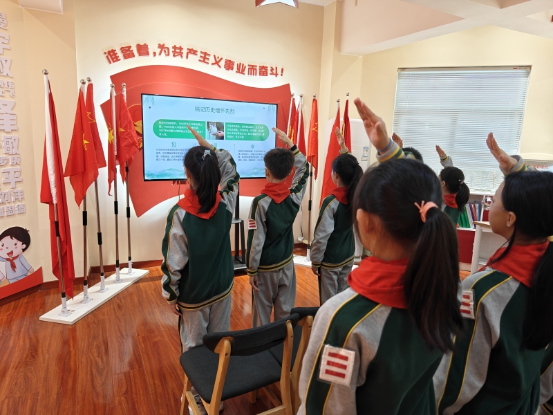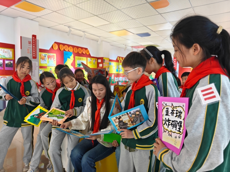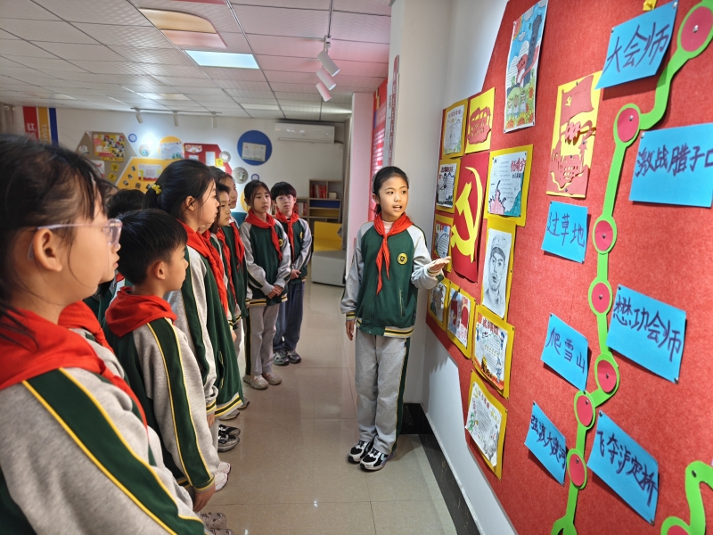 在“英雄故事我來講”活動中,少先隊員講述英烈事跡,學(xué)習(xí)英烈精神,從他們身上汲取永遠向前的不竭動力。“頌英雄詩歌”環(huán)節(jié),少先隊員用扣人心弦的聲音、激昂飽滿的情感誦讀詩歌。參觀黨史館、學(xué)習(xí)黨史期間,大隊輔導(dǎo)員張琳琳聲情并茂地講解長征中的動人故事,少先隊員個個聽得聚精會神。