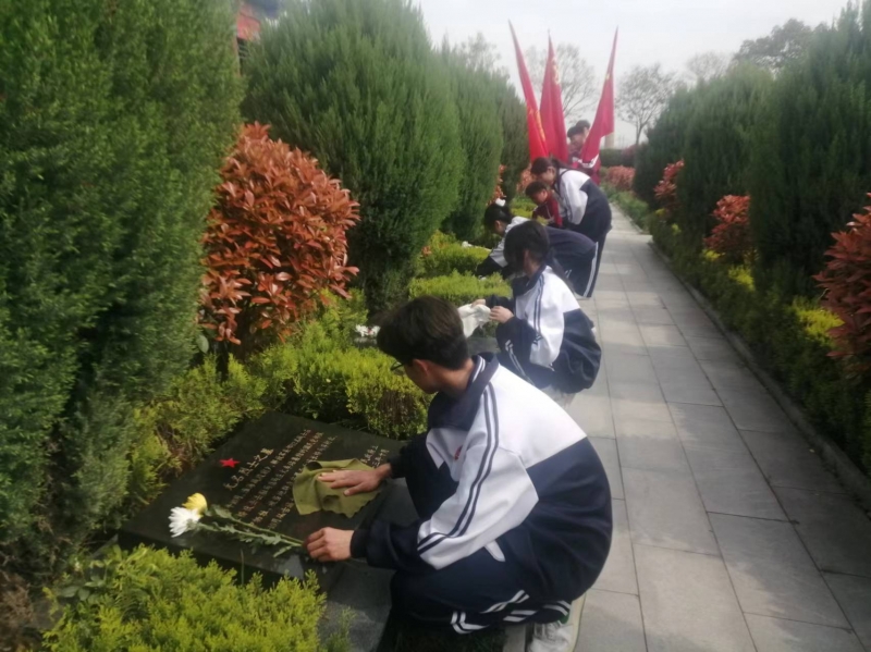 祭掃活動(dòng)在莊嚴(yán)的國(guó)歌中拉開(kāi)了序幕。在革命烈士紀(jì)念碑前,全體師生肅立默哀,向烈士敬獻(xiàn)花籃,深切悼念抗戰(zhàn)烈士。謝芒書(shū)記發(fā)表講話,激勵(lì)大家要以革命先烈為榜樣,秉承先烈遺志,從英烈的精神中汲取動(dòng)力和滋養(yǎng),不忘初心、牢記使命。學(xué)生代表也在發(fā)言中號(hào)召同學(xué)們繼承發(fā)揚(yáng)先輩們的愛(ài)國(guó)情、報(bào)國(guó)志,踔厲奮發(fā),勇毅前行。