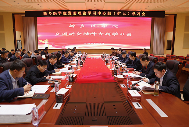 近日,新鄉(xiāng)醫(yī)學院黨委書記、校長任文杰主持召開校黨委理論學習中心組學習會,專題學習2024年全國兩會精神及習近平總書記關于發(fā)展新質(zhì)生產(chǎn)力的重要論述,進一步凝聚共識、匯聚力量,推動學校事業(yè)發(fā)展躍上新臺階。