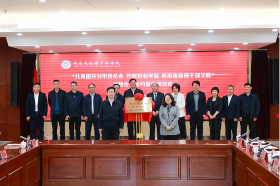 為學習弘揚焦裕祿精神,傳承紅色基因,賡續(xù)紅色血脈,4月1日上午,開封職業(yè)學院與焦裕祿干部學院、開封市團市委戰(zhàn)略合作簽約暨“開封職業(yè)學院思政教育基地”“焦裕祿精神青年學校”揭牌儀式在焦裕祿干部學院成功舉行。開封市委組織部部務委員、焦裕祿干部學院黨委副書記、常務副院長文柏松,焦裕祿干部學院領導蔡治業(yè)、王開、劉巖、王留群,共青團開封市委副書記孫楠、共青團開封市委學校部部長周永行,開封職業(yè)學院黨委書記儲建新、校長徐仲昆等校領導出席。儀式由焦裕祿干部學院黨委委員、副院長蔡治業(yè)主持。