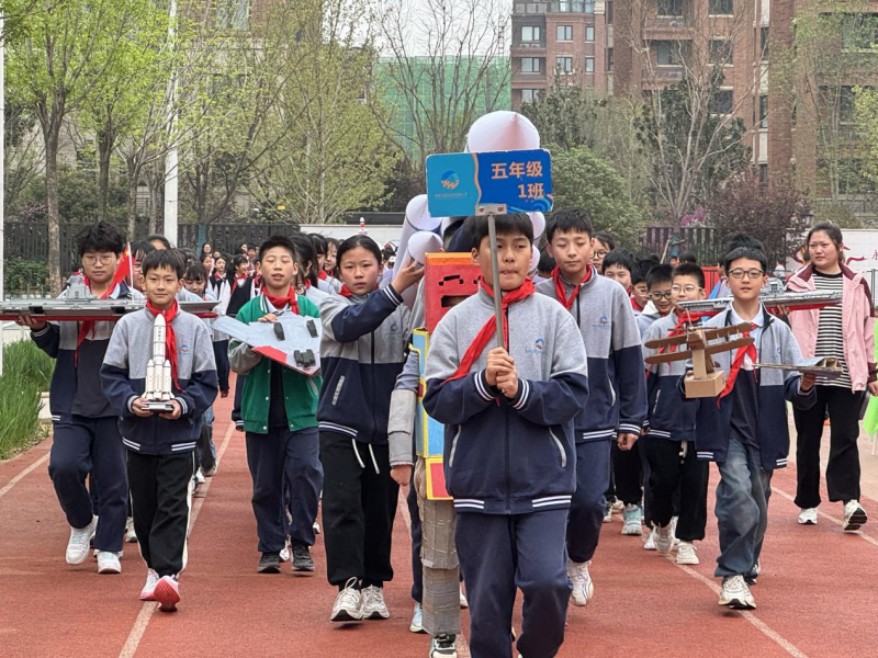 4月2日,鄭州市惠濟(jì)區(qū)新城路小學(xué)為期一個月的第二屆科技節(jié)啟幕。孩子們發(fā)射水火箭啟動開幕式,隨后各班級創(chuàng)意方隊輪番展示,孩子們化身發(fā)明家、身穿宇航服、頭戴科技感的帽子、手持火箭模型、腳踩平衡車……豐富多彩的創(chuàng)意和想法,盡顯創(chuàng)造能力。