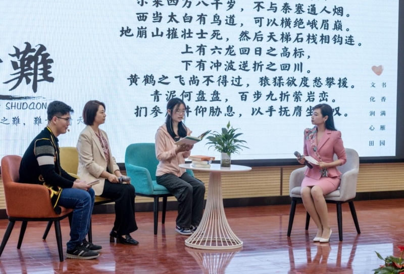 學(xué)校優(yōu)秀教師尹亞南、學(xué)生柳杏子、烏茲別克斯坦留學(xué)生阿里分別就《中華典籍里的優(yōu)秀傳統(tǒng)文化》分別進(jìn)入了誦讀和訪談。學(xué)生們展示了情景誦讀《少年中國(guó)說(shuō)》,師生們激情澎湃的朗誦,贏得了現(xiàn)場(chǎng)觀眾們的陣陣掌聲。最后,河南省高校圖工委高職高專分委會(huì)副主任梁國(guó)華最后進(jìn)行了總結(jié)點(diǎn)評(píng)。