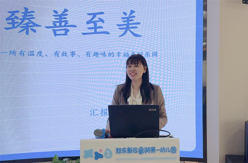 秦雪以“溫潤而澤 臻善至美”為題,重點圍繞幼兒園辦園條件的保障性、師資隊伍的專業(yè)性、“3511”潤澤課程的前瞻性、園所成績的豐碩性,以及未來發(fā)展的目標性等方面做了詳細匯報。