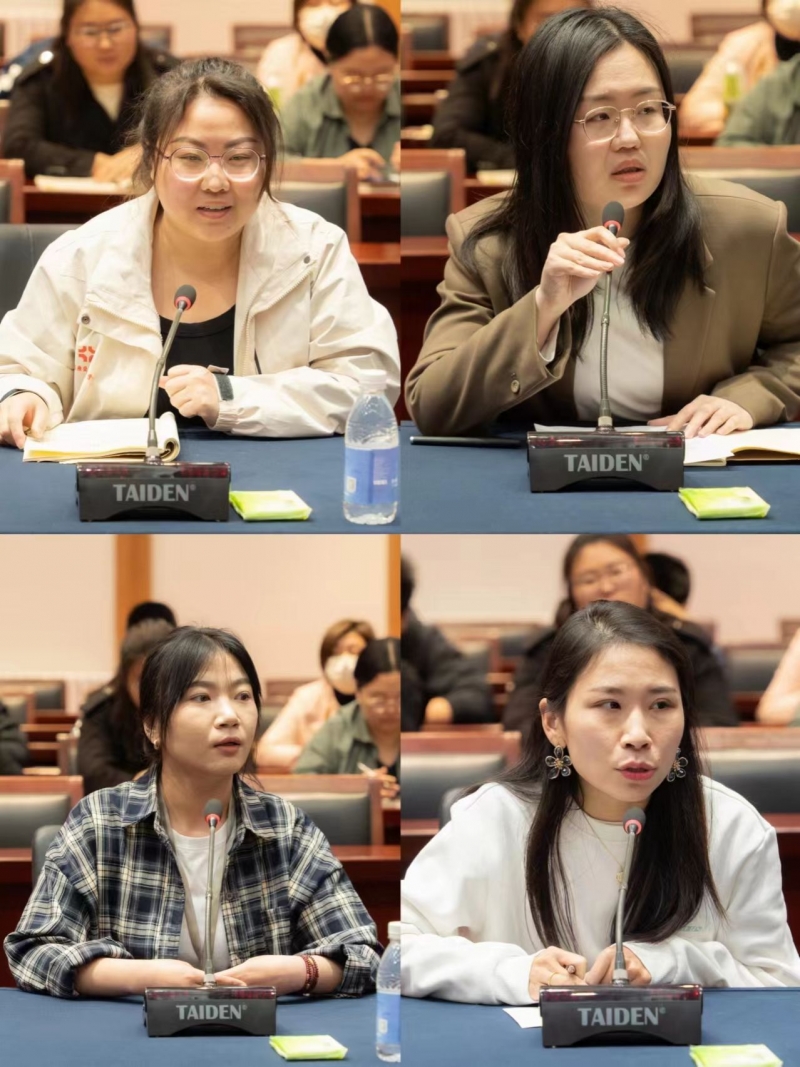 在交流互動(dòng)環(huán)節(jié)中,輔導(dǎo)員朱美宇、楊秋雨、康曉晨、崔艷婷分別從防電信網(wǎng)絡(luò)詐騙、校園交通安全、宿舍人際關(guān)系、學(xué)生心理健康等方面分享了實(shí)際案例、具體做法和存在的問題。張金安肯定了輔導(dǎo)員們的做法,并就存在的問題做了分析、解答。