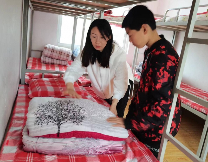 學(xué)生因為離家較遠基本都需要住校。當正常孩子還在媽媽懷里撒嬌的時候,這些平均只有八九歲的殘障孩子就要學(xué)會自己吃飯、疊被、洗漱,適應(yīng)一個人睡覺的生活。2017年秋期開學(xué),李冰值夜班時發(fā)現(xiàn)一個小女孩躲在被窩里哭,問過才知道原來是第一次離家想媽媽了,于是李冰抱著她,哄到十點多才睡去。10年來,無數(shù)個夜晚,李冰每次夜里值班,都要起來幾次,給蹬掉被子的學(xué)生蓋好被子。