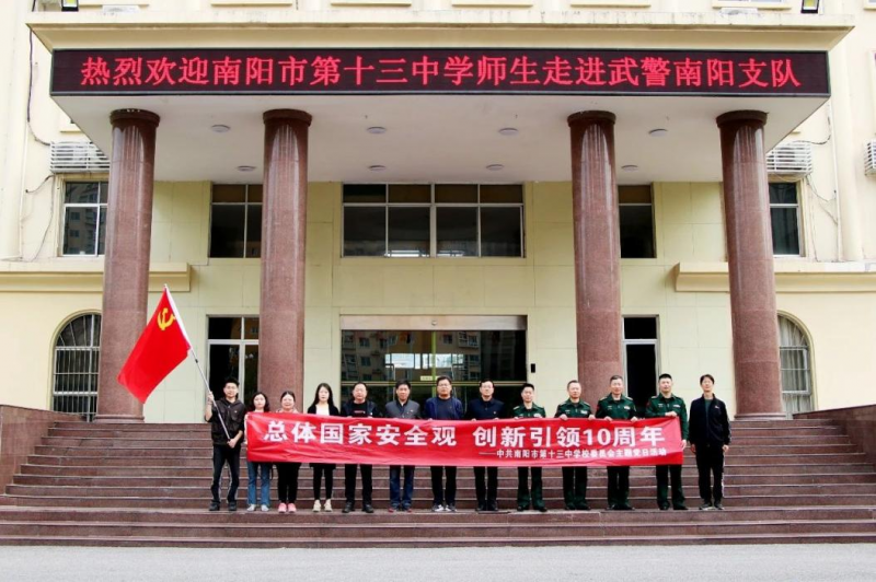4月13日上午,在第9個全民國家安全教育日來臨之際,南陽市第十三中學(xué)校的教師、共青團(tuán)員、少先隊(duì)員代表在校長王傳洋的帶領(lǐng)下來到武警南陽支隊(duì)開展國家安全教育研學(xué)活動。學(xué)校師生與武警官兵近距離接觸,共同學(xué)習(xí)國家安全知識,增強(qiáng)國家安全意識,提升維護(hù)國家安全能力。