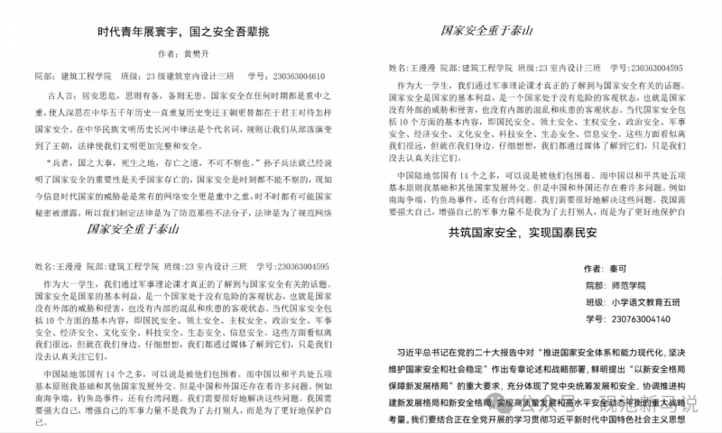 為了進(jìn)一步加深學(xué)生對國家安全知識的理解和認(rèn)知,提高學(xué)生的國家安全意識,國防教育教研室結(jié)合《國家安全教育》課程教學(xué),開展了富有實踐意義的國家安全教育主題優(yōu)秀網(wǎng)文征集活動。這項活動旨在通過激發(fā)學(xué)生的創(chuàng)作熱情和思維活力,引導(dǎo)他們主動關(guān)注國家安全問題,結(jié)合課堂所學(xué)知識進(jìn)行深入思考,增強(qiáng)維護(hù)國家安全的責(zé)任感和使命感。同時,通過征集優(yōu)秀網(wǎng)文,也可以促進(jìn)學(xué)生之間的交流和學(xué)習(xí),營造濃厚的國家安全教育氛圍。