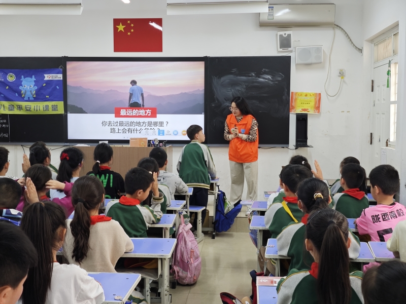 “兒童平安小課堂”以交通安全和消防安全為主。在交通安全中,講師通過“認識道路交通中的危險”和“安全出行”兩大主題,對道路交通中常見的安全隱患進行分析,并給出預防措施;從三大常見交通場景教會學生應對不同路況,使學生掌握步行安全通行要素。同時,講師引入安全帶、安全座椅及頭盔的重要性,讓學生循序漸進地掌握交通安全知識。