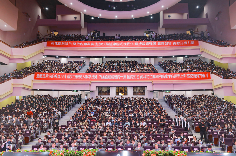 省委教育工委專職副書記尹洪斌在講話中指出,鄭州商學(xué)院始終聚焦立德樹人這一根本任務(wù),堅(jiān)持不懈用習(xí)近平新時(shí)代中國特色社會(huì)主義思想鑄魂育人,持續(xù)深化“三全育人”成效,真正培養(yǎng)堪當(dāng)民族復(fù)興大任的時(shí)代青年。始終聚焦“打造優(yōu)勢(shì)學(xué)科專業(yè)”這一發(fā)展重點(diǎn),深化調(diào)整優(yōu)化學(xué)科學(xué)院和專業(yè)結(jié)構(gòu),整合優(yōu)勢(shì)資源,集中人力物力財(cái)力,重點(diǎn)培育打造若干個(gè)在全省乃至全國叫得響的學(xué)科專業(yè)。始終聚焦“辦學(xué)能力提升”這一關(guān)鍵,深入推進(jìn)教育理念等系統(tǒng)性綜合改革,全面加強(qiáng)教師隊(duì)伍建設(shè),下真功夫引高層次人才,不斷提高教育教學(xué)質(zhì)量和人才培養(yǎng)質(zhì)量。始終聚焦“服務(wù)現(xiàn)代化河南建設(shè)”這一定位,深化校企結(jié)合、產(chǎn)教融合、科教融匯,推動(dòng)相關(guān)學(xué)科專業(yè)領(lǐng)域人才培育模式改革,加大專業(yè)課程體系和教學(xué)內(nèi)容調(diào)整,為現(xiàn)代化建設(shè)提供更加有力的人才和智力支撐。尹洪斌表示,省委教育工委、省教育廳將高度重視和關(guān)心學(xué)校的改革發(fā)展,為學(xué)校高質(zhì)量發(fā)展創(chuàng)造更好條件、提供更優(yōu)服務(wù)、營(yíng)造更好環(huán)境。