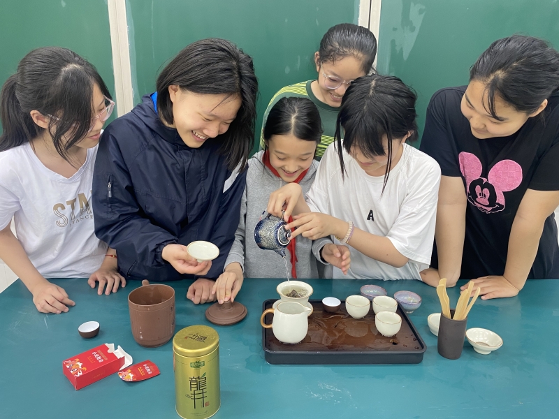 實踐活動中,學(xué)生們積極利用圖書館、網(wǎng)絡(luò)等資源查找相關(guān)資料,深入了解茶的種類、起源、禮儀、種植等知識。課堂上,各小隊積極分享自己的研究成果。茶的禮儀小隊為大家介紹了泡茶追求簡約、純粹、自然的理念,注重水、茶、火、壺和手法的協(xié)調(diào)與和諧。為了更好地體驗泡茶的過程,學(xué)生們帶來了各式各樣的茶具,現(xiàn)場進行嘗試。課下,學(xué)生們把自己掌握到關(guān)于茶的知識熱情地向低年級的學(xué)生們進行介紹,大大激發(fā)了他們對茶的好奇心。