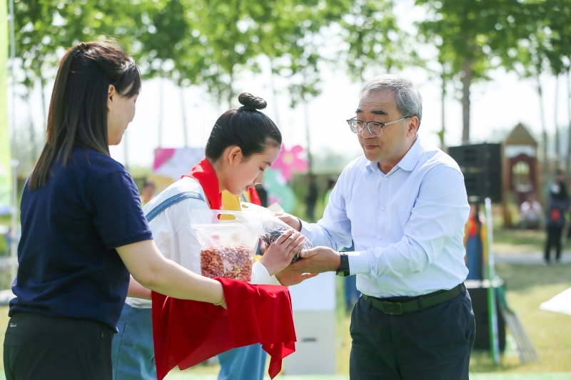 啟幕式上,中國(guó)工程院院士、河南省農(nóng)科院院長(zhǎng)張新友向?qū)W生代表贈(zèng)送花生種子,并開(kāi)講春天播種第一課,講述把不可能變成可能的育種故事。他希望新時(shí)代少年要有遠(yuǎn)大理想和科學(xué)夢(mèng)想,攻克更多技術(shù)難題,實(shí)現(xiàn)這個(gè)目標(biāo),既要仰望星空,也要腳踏泥土。