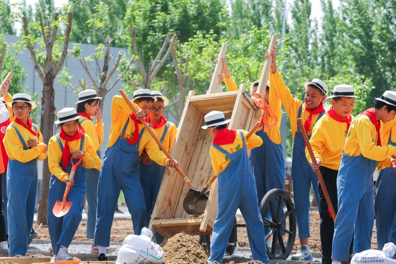 與此同時(shí),在各自的“責(zé)任田”里,不同班級(jí)結(jié)合孩子們的興趣,由農(nóng)業(yè)專家和種植老師帶領(lǐng)孩子們開(kāi)展施肥、翻地、澆水等種植勞動(dòng),栽種下西紅柿苗、黃瓜苗、辣椒苗和艾草等。院士專家與孩子們一起勞動(dòng)的畫(huà)面,成為這個(gè)春天里最美的一道風(fēng)景。
