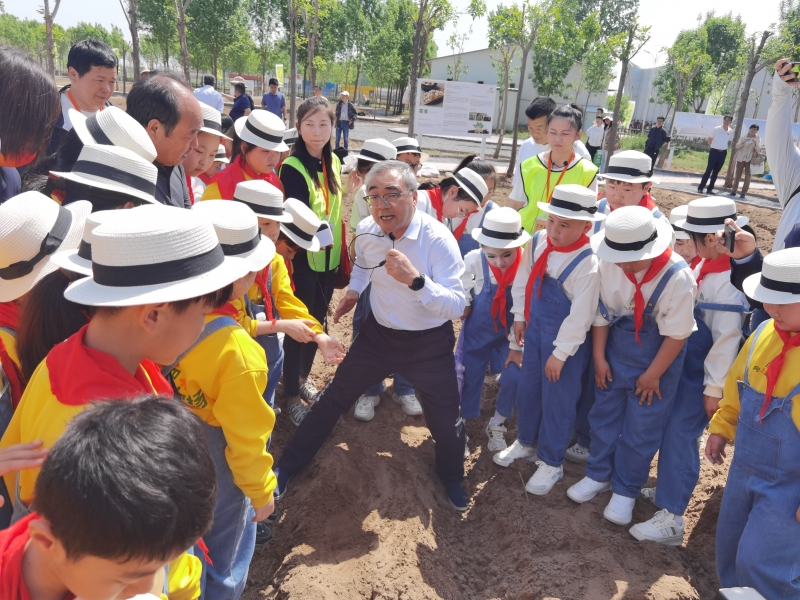 谷雨時(shí)節(jié)的中原大地,一派春和景明、生機(jī)盎然的景象,正是播種栽苗的好時(shí)機(jī)。張新友、劉林亞、王慶等“大朋友”身著便裝、腳步輕快地走進(jìn)學(xué)生種植實(shí)踐基地,看到孩子們?cè)谔镩g辛勤忙碌的勞動(dòng)場(chǎng)面,不住地點(diǎn)頭贊許。踩著松軟濕潤(rùn)的黃土,張新友來(lái)到一群孩子中間蹲下,耐心地給他們講解花生播種的要點(diǎn)。“同學(xué)們注意,花生播種要掌握幾個(gè)重點(diǎn),那就是氣溫要適合、墑情要適宜,深度要適中,行距株距要合理,這樣播種后的花生才會(huì)出苗快、出苗齊、長(zhǎng)勢(shì)壯,為以后的高產(chǎn)打下基礎(chǔ)。”張新友一邊說(shuō),一邊給孩子們深入淺出地科普什么是土壤墑情,播種深淺對(duì)出苗有什么影響,行距株距多少才算科學(xué)。“我原來(lái)以為隨便把一粒花生埋進(jìn)土里就行了,沒(méi)想到播種還有這么多講究,看來(lái)農(nóng)業(yè)并不是我們想象的那么簡(jiǎn)單,里面有很多科學(xué)呢!”鄭東新區(qū)新城小學(xué)三年級(jí)四班郝雨欣同學(xué)感慨地說(shuō)。
