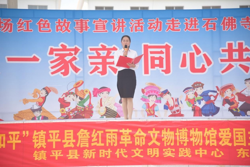 4月18日,鎮(zhèn)平縣“百場紅色故事宣講進(jìn)園”活動走進(jìn)石佛寺鎮(zhèn)初級中學(xué)。本次宣講結(jié)合當(dāng)?shù)赜蛱厣浴爸腥A民族一家親,同心共筑中國夢”為主題,激發(fā)青少年學(xué)生的愛國情懷,鑄牢中華民族共同體意識。