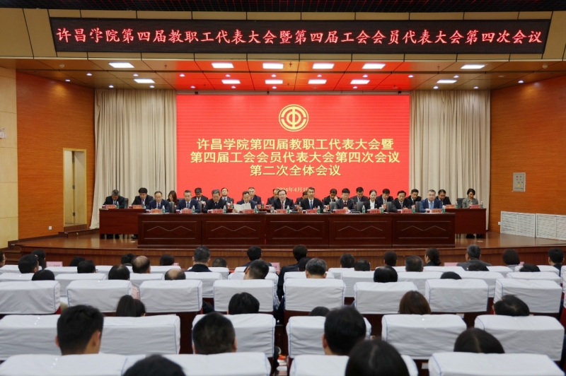 4月19日,許昌學院召開第四屆教職工代表大會暨第四屆工會會員代表大會第四次會議。校黨委書記郭濤,校長鄭直,黨委副書記孫海,黨委副書記、工會主席梁予昉,副校長高金星、潘春彩、杜根遠,紀委書記申占偉,副校長王俊、牛海鵬出席會議。182名正式代表、21名列席代表參加會議。