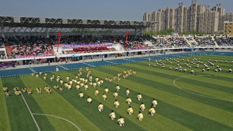 4月18日上午,安陽工學(xué)院在體育場舉辦甲骨文廣播體操比賽,校黨委書記任中普,校長沈記全,校黨委副書記牛瑞慶,副校長萬鵬杰、彭仁海、閆春嶺,運動會組委會、相關(guān)職能部門、二級學(xué)院負(fù)責(zé)人及近萬名師生現(xiàn)場觀看了比賽。