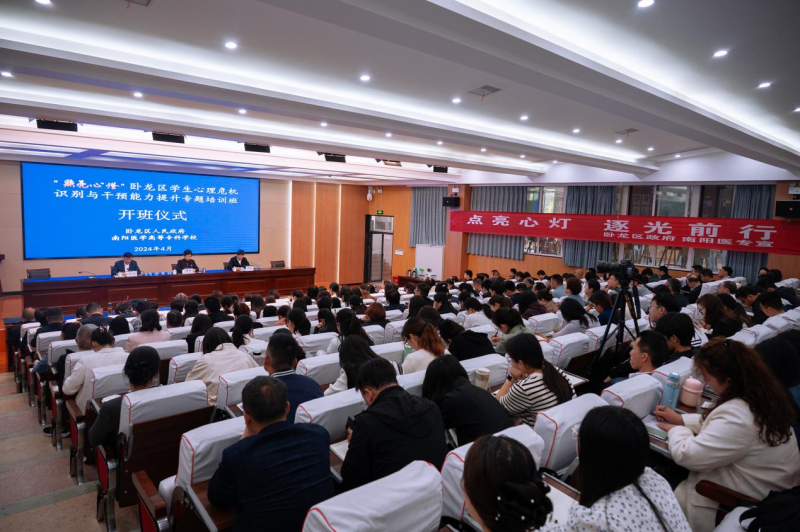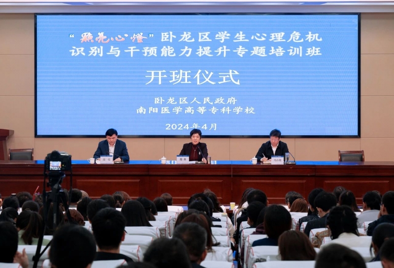 為進(jìn)一步加強(qiáng)臥龍區(qū)中學(xué)心理健康教育工作,增強(qiáng)心理危機(jī)預(yù)防及干預(yù)的針對(duì)性和實(shí)效性,共同守護(hù)學(xué)生健康心靈,4月20日上午,南陽醫(yī)學(xué)高等專科學(xué)校聯(lián)合臥龍區(qū)人民政府,舉行“臥龍區(qū)學(xué)生心理危機(jī)識(shí)別與干預(yù)能力提升專題培訓(xùn)班”開班儀式。南陽醫(yī)學(xué)高等專科學(xué)校校長范真、臥龍區(qū)人民政府副區(qū)長馮自敬、臥龍區(qū)教體局局長高亮出席儀式。學(xué)生健康服務(wù)與心理咨詢中心全體工作人員和臥龍區(qū)學(xué)校300余名心理教育工作者參加開班儀式。儀式由高亮主持。