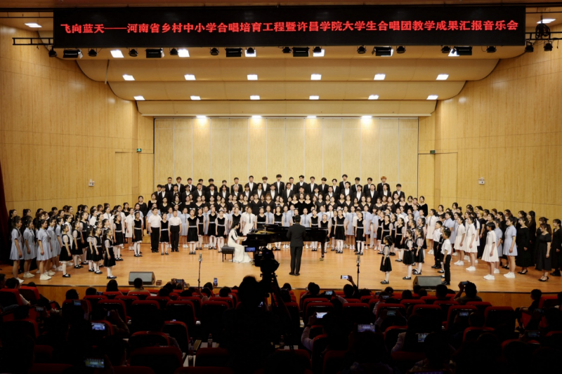 2023年5月,由省教育廳組織實(shí)施的全省鄉(xiāng)村中小學(xué)“以美育人 向美而歌”合唱培育工程正式啟動(dòng),確定由許昌學(xué)院音樂(lè)舞蹈學(xué)院結(jié)對(duì)幫扶許昌市示范區(qū)實(shí)驗(yàn)小學(xué)、漯河市空冢郭鎮(zhèn)中學(xué)。一年來(lái),許昌學(xué)院合唱團(tuán)隊(duì)教師無(wú)論從遴選團(tuán)員、樂(lè)理教學(xué),到音準(zhǔn)訓(xùn)練、作品演唱都進(jìn)行了系統(tǒng)指導(dǎo)和訓(xùn)練,本場(chǎng)音樂(lè)會(huì)既是全方位、多角度展示合唱培育工程教學(xué)和實(shí)踐成果,也是許昌學(xué)院音樂(lè)舞蹈學(xué)院合唱社團(tuán)分類(lèi)分層次教學(xué)改革的階段性成果匯報(bào)。