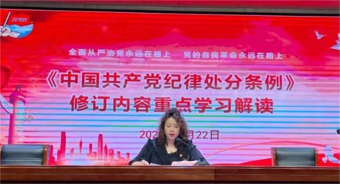 王立康指出,全體黨員教師要把學習貫徹《中國共產黨紀律處分條例》作為當前重要政治任務,認真學習領會條例精神,以嚴明的紀律推進黨的自我革命,不斷提升自身的政治素養(yǎng)和拒腐防變能力,使廉潔自律規(guī)范內化于心、外化于行,不斷堅定理想信念,增強宗旨意識,嚴格遵守法律法規(guī),守住紀律“底線”、不越“紅線”,切實以學紀、知紀、明紀、守紀的優(yōu)良紀律作風保障學校教育教學高質量發(fā)展。