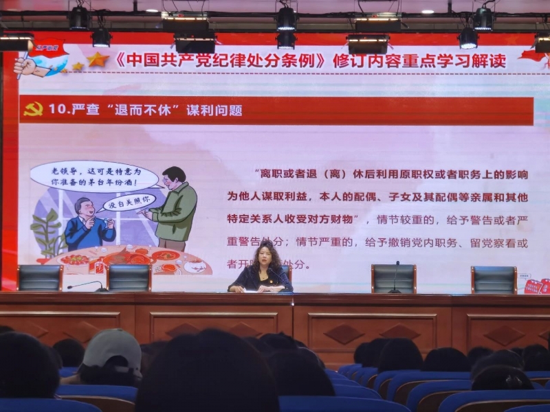 學校黨支部書記、校長王立康帶來《<中國共產黨紀律處分條例>修訂內容重點學習解讀》專題紀律黨課,強調了學習《中國共產黨紀律處分條例》的重要性和緊迫性,談到作為黨員教師要以身作則,率先垂范,嚴格遵守黨的紀律和規(guī)矩,自覺維護黨的團結統(tǒng)一,確保黨的教育事業(yè)健康發(fā)展。