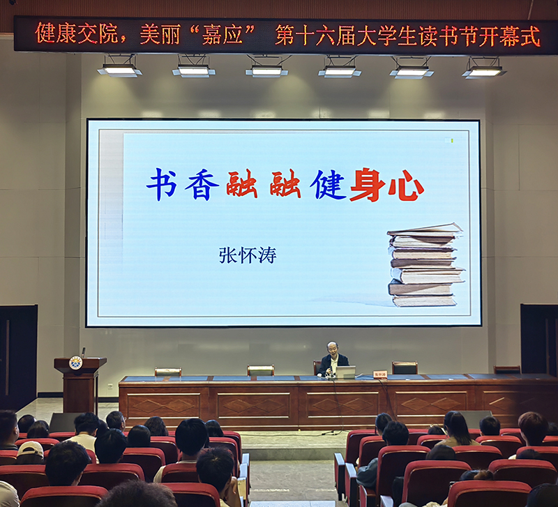 本次“嘉應(yīng)講堂”邀請(qǐng)了張懷濤教授作主題為《書香融融健身心—閱讀與心理健康》的學(xué)術(shù)報(bào)告。報(bào)告中,他從大學(xué)生面臨的四項(xiàng)心理困擾引入主題,說(shuō)明了閱讀慰藉心靈的重要性。從閱讀健心、書療理通等方面,列舉了大量中外知名人士的讀書案例,說(shuō)明了書療的道理和其對(duì)心理健康的影響,對(duì)閱讀療法的知識(shí)體系作了闡釋。他還向師生們推薦了留心書目、驗(yàn)方書目等不同類型的書單。他以“黃河交通學(xué)院”作藏頭詩(shī),祝愿黃河交通學(xué)院發(fā)展越來(lái)越好。