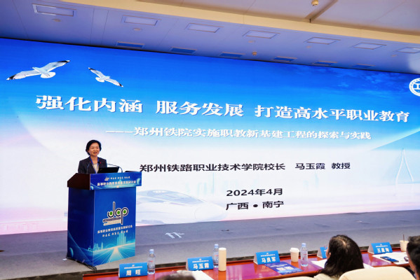 4月24日-25日,2024年全國高等職業(yè)學(xué)校校長聯(lián)席會議高等職業(yè)教育高質(zhì)量發(fā)展研討會在南寧召開。教育部職業(yè)教育發(fā)展中心主任林宇,廣西壯族自治區(qū)住房和城鄉(xiāng)建設(shè)廳黨組副書記、副廳長、一級巡視員汪夏明,廣西壯族自治區(qū)教育廳副廳長趙玉芳等領(lǐng)導(dǎo)出席了會議,會議由校聯(lián)會主席董剛主持。鄭州鐵路職業(yè)技術(shù)學(xué)院校長馬玉霞應(yīng)邀出席會議,并在“新基建與關(guān)鍵辦學(xué)能力”論壇上作主題發(fā)言。