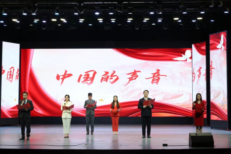 “無論未來有多遠,傳媒人行進的目標,永遠是正前方,讓我們牢記中國的聲音,用那繼往開來的使命奮勇前行……”在匯報演出現(xiàn)場,音樂舞蹈學(xué)院播音與主持藝術(shù)專業(yè)青年教師們在舞臺上時而柔和細膩飽含深情,時而高亢激越振聾發(fā)聵,在談古論今,歌頌美好中把一個個角色用聲音進行展現(xiàn),觀眾們在“聲臨其境”中受到感染。