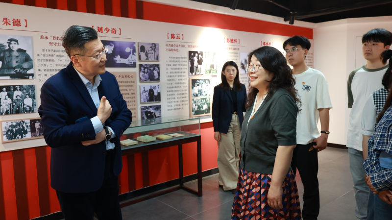 新鄉(xiāng)開放大學(xué)副校長張永忠和相關(guān)工作人員熱情歡迎文心書院師生,帶領(lǐng)參觀校內(nèi)牧野家風(fēng)家教館。整個展館面積超過1000平方米,是河南省首個家風(fēng)家教館。內(nèi)設(shè)七大展區(qū):華夏古訓(xùn)源遠(yuǎn)流長、紅色家風(fēng)傳承賡續(xù)、廉語清風(fēng)醒世警人、孫奇逢家風(fēng)家訓(xùn)等,內(nèi)容翔實(shí)豐富。在講解員的生動解說下,一卷中華文化的家風(fēng)傳承徐徐展開,從古至今,從靜到動,多角度、多維度呈現(xiàn)了家風(fēng)家訓(xùn)的豐富內(nèi)涵。師生們從一個個家風(fēng)經(jīng)典故事中,深切感受優(yōu)良家風(fēng)帶來的魅力與影響,通過學(xué)習(xí),對自身的職責(zé)和使命有了更深刻的認(rèn)識,要嚴(yán)守黨紀(jì)規(guī)矩,筑牢廉潔防線,積極營造崇尚廉潔、風(fēng)清氣正的良好氛圍。