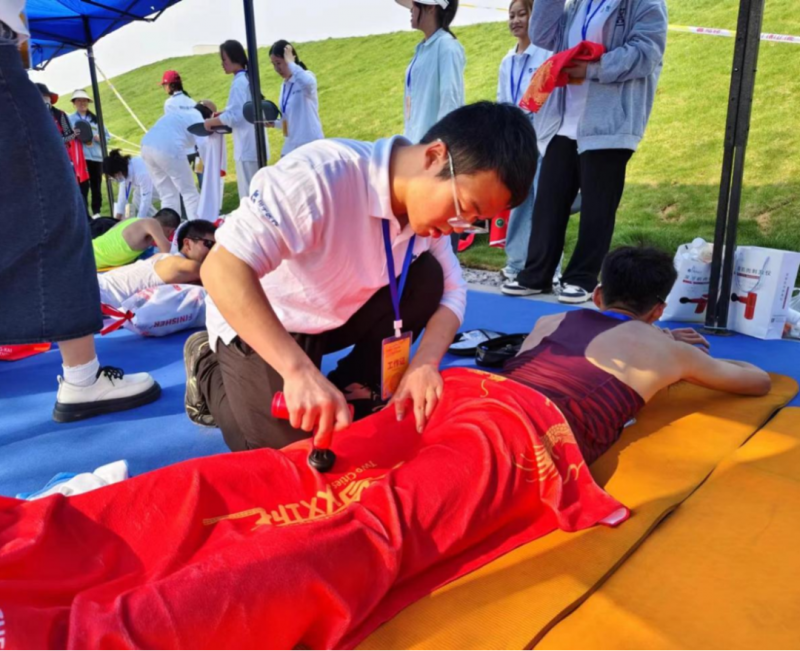 本次比賽設置全程馬拉松(42.195公里)、半程馬拉松(21.0975公里)、歡樂跑(5公里)3個項目, 對醫(yī)療康復隊伍需求量極大。濮陽醫(yī)專的志愿者們在比賽當天迅速到崗,引導運動員們牽伸、放松、按摩,盡一切努力為他們排解疲累。認真的服務得到了運動員們的認可,每個人的面前都排起了長隊,志愿者們用自己的康復專業(yè)知識,結(jié)合每位運動員的具體情況做針對性、個性化服務。他們個個在工作中汗流浹背,有蹲著的、有彎著腰的、有跪下的,邊服務邊提醒運動員注意自我防護,讓這次志愿服務活動即成為了一堂專業(yè)實踐課,又成為了一堂思政大課。