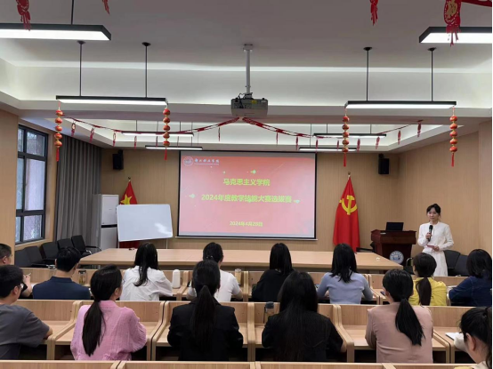 為深入學(xué)習(xí)貫徹黨的二十大精神,提升思政課教師專業(yè)素養(yǎng),按照《中共河南省委宣傳部中共河南省委教育工委河南省教育廳關(guān)于開展2024年度全省學(xué)校思想政治理論課教學(xué)技能“大練兵、大比武、大展示”活動》通知要求,4月28日,鄭州科技學(xué)院馬克思主義學(xué)院在科東會議室101舉行教學(xué)技能大賽選拔賽,全體教師進行現(xiàn)場觀摩。
