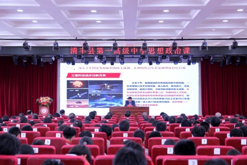 清豐一高400余名學(xué)生和100余名教師代表聆聽思政課。整堂課內(nèi)容豐富,既有理論的高度,又有思想的深度,還有殷切的期望和深切的勉勵(lì),具有很強(qiáng)的理論性、針對(duì)性和指導(dǎo)性,贏得了現(xiàn)場(chǎng)師生的陣陣掌聲。