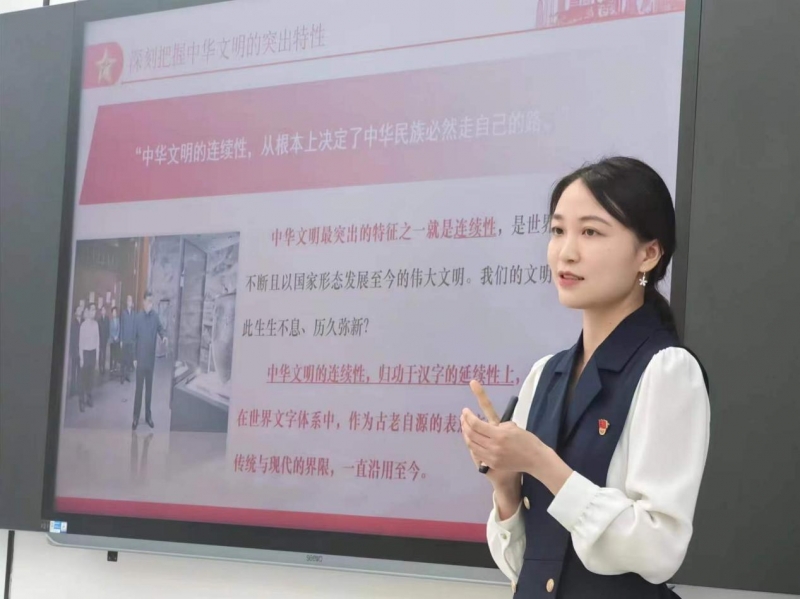 “中華文明的連續(xù)性,從根本上決定了中華民族必然要走自己的路……”4月27日,鄭州幼兒師范高等專科學(xué)校象湖校區(qū)思政VR實踐教學(xué)中心內(nèi)精彩紛呈,該校2023年度“千俊百優(yōu)”黨員素質(zhì)提升工程培養(yǎng)人選考核如期舉行。黨委組織部部長王西克出席并講話,黨委宣傳部(統(tǒng)戰(zhàn)部)副部長張鴻欣、機(jī)關(guān)第二黨支部書記李元奇、第四黨支部書記任世卿、馬克思主義學(xué)院黨總支書記梁彩霞、學(xué)校黨的二十大精神宣講團(tuán)成員王倩等資深黨課教師擔(dān)任評委。