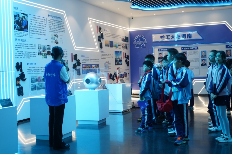 同學(xué)們在哈爾濱工業(yè)大學(xué)鄭州研究院科技展廳,感受航天、機器人、小衛(wèi)星等領(lǐng)域重大標(biāo)志性成果,探秘國之重器,了解哈工大校史及其在我國航天領(lǐng)域取得的成就與突出貢獻(xiàn)。通過探索神秘的龍江二號和天問一號,孩子們開啟頭腦風(fēng)暴,積極回答問題,展現(xiàn)了智慧與童真的碰撞。