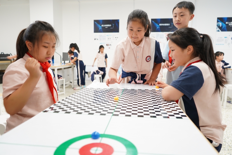 學(xué)生們在研學(xué)導(dǎo)師的指導(dǎo)下,首次接觸并操作無人機,通過觀察與體驗發(fā)現(xiàn)AI冰壺機器人的“聰明才干”,他們親身感受到了前沿科技的魅力。