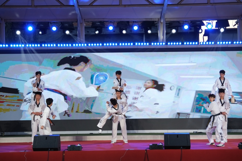 整場演出精彩紛呈、激情四射,包括舞蹈、合唱、跆拳道、年代走秀、朗誦等22個節(jié)目。一曲古箏合奏《少年中國說》,將中華經(jīng)典的鏗鏘音韻演繹得慷慨激昂,表達(dá)了十二中學(xué)子的青春心聲;蒙古舞《吆呼兒》展現(xiàn)了少數(shù)民族豁達(dá)開朗、勇敢豪邁的性格;《跆拳道展示》中,學(xué)校跆拳道隊員的跆舞、競技腿法、騰空旋轉(zhuǎn)踢、跆拳道踢板等動作高能不斷,完美詮釋了力與美;火辣勁爆的熱舞《舞動青春》嗨翻全場,彰顯了青春的活力與律動;年代走秀《華夏風(fēng)華》,將中華文化的千年傳承與現(xiàn)代時尚巧妙融合,經(jīng)典與時尚碰撞出新時代火花;集體朗誦《月光下的中國》將五千年的文明史融入文字,用優(yōu)美的聲韻表達(dá)對偉大祖國的熱愛。