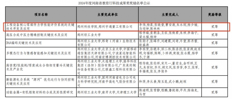 近日,河南省教育廳印發(fā)《關(guān)于2024年度科技成果獎(jiǎng)獎(jiǎng)勵(lì)名單的通知》,鄭州科技學(xué)院申報(bào)的“工程設(shè)備核心零部件力學(xué)性能評(píng)價(jià)系統(tǒng)的關(guān)鍵技術(shù)開發(fā)及應(yīng)用”項(xiàng)目獲2024年度河南省教育廳科技成果獎(jiǎng)貳等獎(jiǎng)。