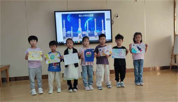 孩子們帶著許多問號,認真觀察、討論、實踐,在展廳留下了好奇的眼神、開心的笑臉、清脆的笑聲……回園后,孩子們將自己的所見、所想以繪畫的形式表達出來,創(chuàng)造出一幅幅科技與藝術碰撞的繪畫作品。一顆顆科學的種子在稚嫩的童心里播撒,慢慢生根發(fā)芽。