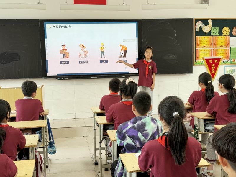 各班召開了以“勞動淬煉成長 實踐創(chuàng)造幸福”為主題的班會活動。班主任老師還組織同學們分享了五一假期中的勞動過程、勞動成果、勞動心得,使學生明白勞動光榮,懂得勞動的可貴,從而學會感恩,珍惜幸福生活,促進學生形成良好的勞動習慣和積極的勞動態(tài)度。班會課最后,學生們根據(jù)五一自身勞動參與情況,填寫了“勞動小達人”評價量表,通過自己評、小隊評、家長評等多主體評價,進一步激發(fā)他們的勞動熱情。