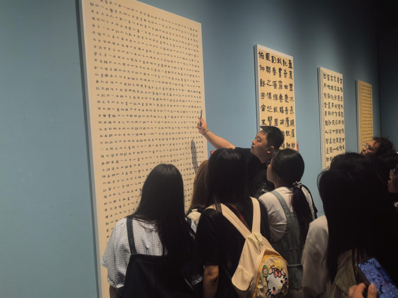 “展廳里,我們跟著老師一起,觀摩學(xué)習(xí)每幅作品,認(rèn)真聆聽老師的講解。同學(xué)們相互交流探討,分享感悟,每當(dāng)我遇見感興趣的作品都會(huì)及時(shí)向老師請(qǐng)教。”23級(jí)書畫專業(yè)學(xué)生姚世隆說。