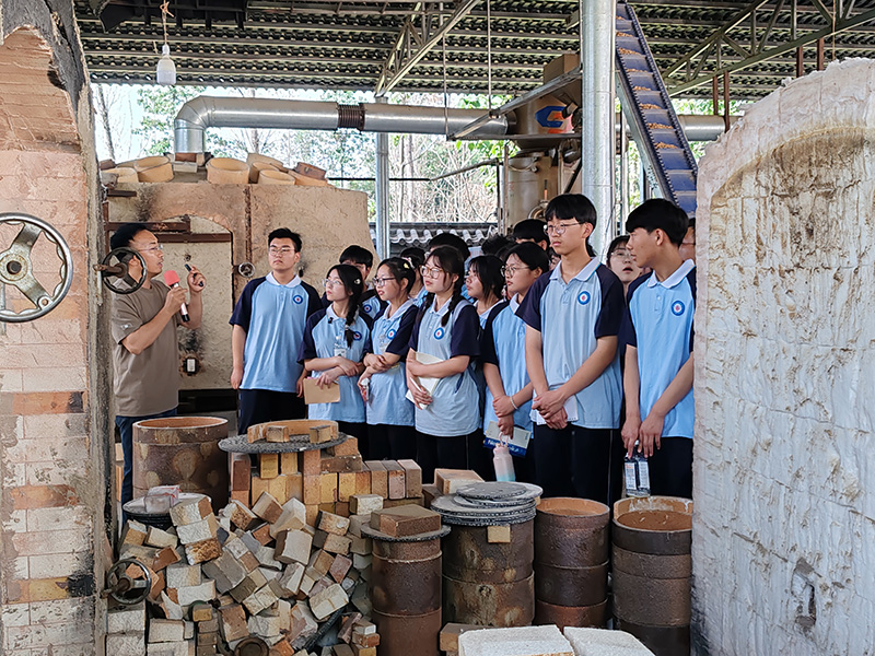 隨后同學們來到星航鈞瓷燒制技藝傳習館,“2023中國非遺年度人物提名候選人”任星航繪聲繪色地介紹了他潛心設(shè)計并主持修建的仿宋代雙乳狀柴燒鈞瓷窯爐,深情講述了千年來匠人們對鈞瓷技藝進行不斷研究與探索、創(chuàng)新和實踐的歷史。