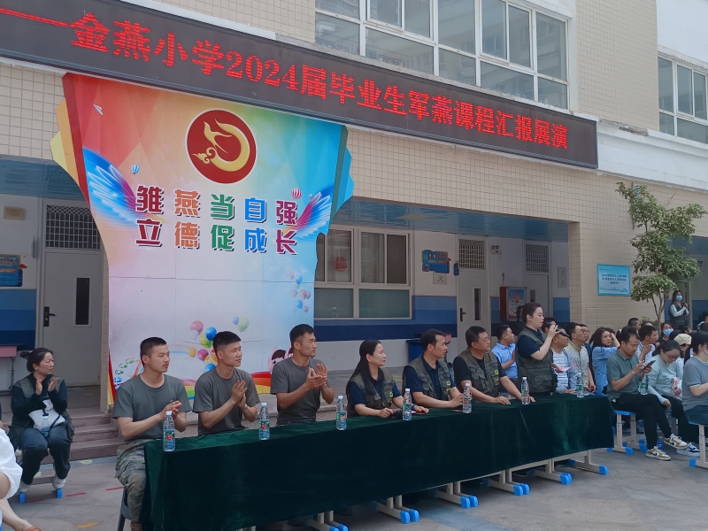 金燕小學(xué)黨總支書記宋璟闡述了開啟“軍燕校本課程”的重要意義。長(zhǎng)期以來(lái),金燕小學(xué)秉承“溫暖+磨礪”的教育思想,提出“雛燕當(dāng)自強(qiáng),立德促成長(zhǎng)”的辦學(xué)理念。突出“立德”,強(qiáng)調(diào)“自強(qiáng)”。她說國(guó)是大的家,家是小的國(guó)。每位父母都希望自己的孩子摒除“驕嬌二氣”,每個(gè)家庭都需要明禮知孝的“頂梁柱”;新時(shí)代需要的不是“溫室中的花朵”,而是具備堅(jiān)強(qiáng)意志品質(zhì)和健康體格的“民族脊梁”。李小輝校長(zhǎng)對(duì)支持“軍燕課程”的訓(xùn)練教官、家長(zhǎng)志愿者表示深深的謝意;王寧副校長(zhǎng)全程主持了這次展演活動(dòng)。