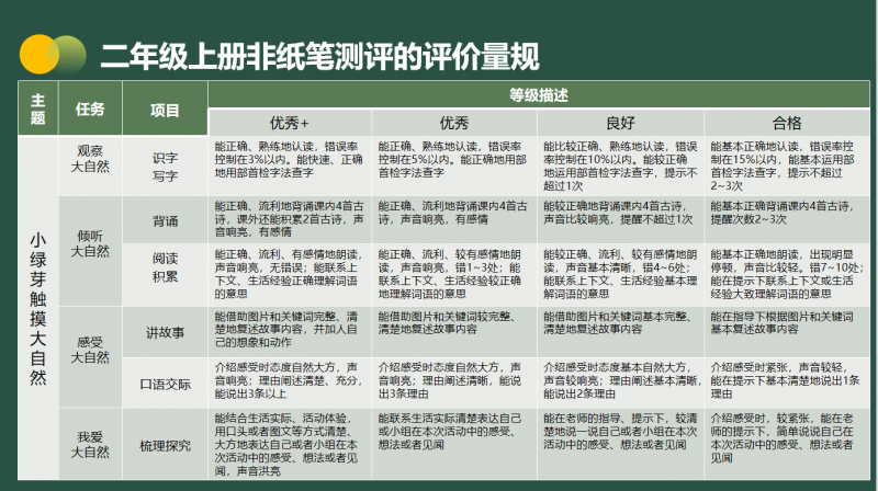 與此同時,為了深入研究一二年級非紙筆測評這一命題,我們的思考也再次走向深入: