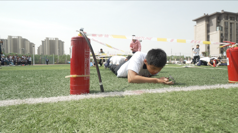 最后的環(huán)節(jié)是爭霸賽,包括搭橋過河、滅火器滅火、擔(dān)架抬傷員20米、穿越火線、跳過小墊子障礙物等項(xiàng)目。同學(xué)們在草地上匍匐前進(jìn),低姿穿越火線;協(xié)同拉展水帶,手持噴頭滅火,仿佛置身于真實(shí)的火場中……在挑戰(zhàn)的征途上,同學(xué)們并肩作戰(zhàn),共同面對每一個困難。每一個環(huán)節(jié)都考驗(yàn)著他們的智慧和勇氣,每一個成功的背后,都凝聚著他們的汗水和努力。