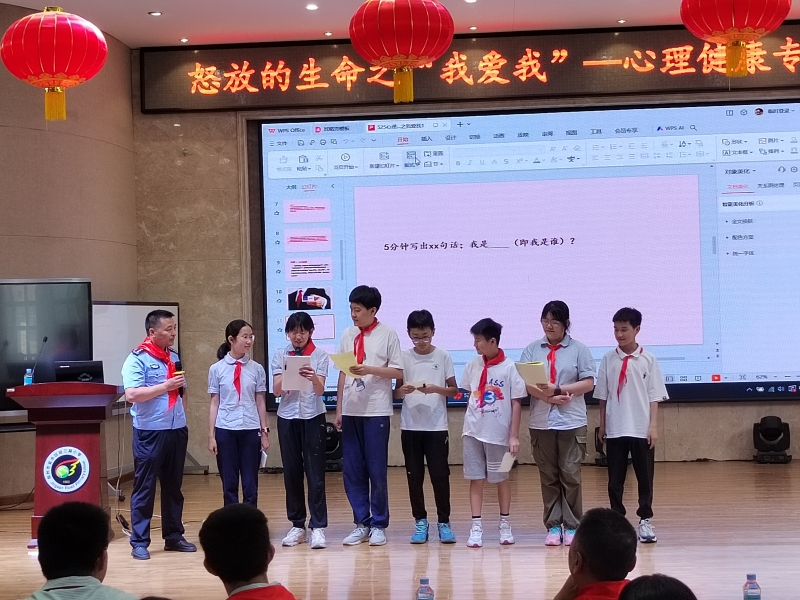 活動(dòng)伊始,樊老師用“目標(biāo)式鼓掌”的暖場(chǎng)小游戲活躍了現(xiàn)場(chǎng)氣氛,拉近了與學(xué)生的距離。接下來(lái),樊老師以“我是誰(shuí)”、“愛(ài)自己是......”、”接納關(guān)系”三個(gè)活動(dòng)引導(dǎo)學(xué)生交流,由淺入深,逐層深入,告訴學(xué)生每個(gè)人都是不同的個(gè)體,都各有優(yōu)點(diǎn);在別人眼中,比自己想象中要好;要有自信心,讓孩子們認(rèn)識(shí)自我、接納自我。整場(chǎng)講座氣氛熱烈,孩子們積極參與,用心思考,認(rèn)真記錄。