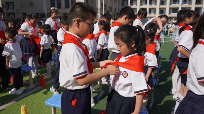 鮮艷的紅領(lǐng)巾如一抹永不褪色的霞光,入隊(duì)儀式讓少先隊(duì)員們對(duì)少年先鋒隊(duì)的使命有了更加深刻的認(rèn)識(shí)。新隊(duì)員的加入為鄭州市金水區(qū)外國(guó)語(yǔ)小學(xué)少先隊(duì)注入了新鮮的血液與滿滿的活力,相信他們會(huì)在星星火炬旗幟的指引下,聽(tīng)黨話,跟黨走!嚴(yán)格要求自己,成為一名合格的少先隊(duì)員,不負(fù)時(shí)光,不懈努力,砥礪前行,時(shí)刻準(zhǔn)備著做共產(chǎn)主義事業(yè)的建設(shè)者和接班人。