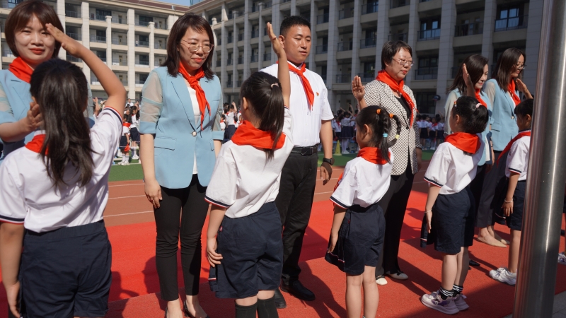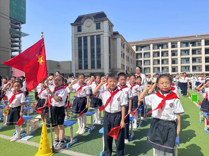 5月22日上午,鄭州市金水區(qū)外國(guó)語(yǔ)小學(xué)舉行了主題為“童心筑夢(mèng)心向黨 星星火炬綻光芒 ”新隊(duì)員入隊(duì)儀式。進(jìn)一步增強(qiáng)少先隊(duì)組織的凝聚力,提升少先隊(duì)員的光榮感和組織歸屬感。
